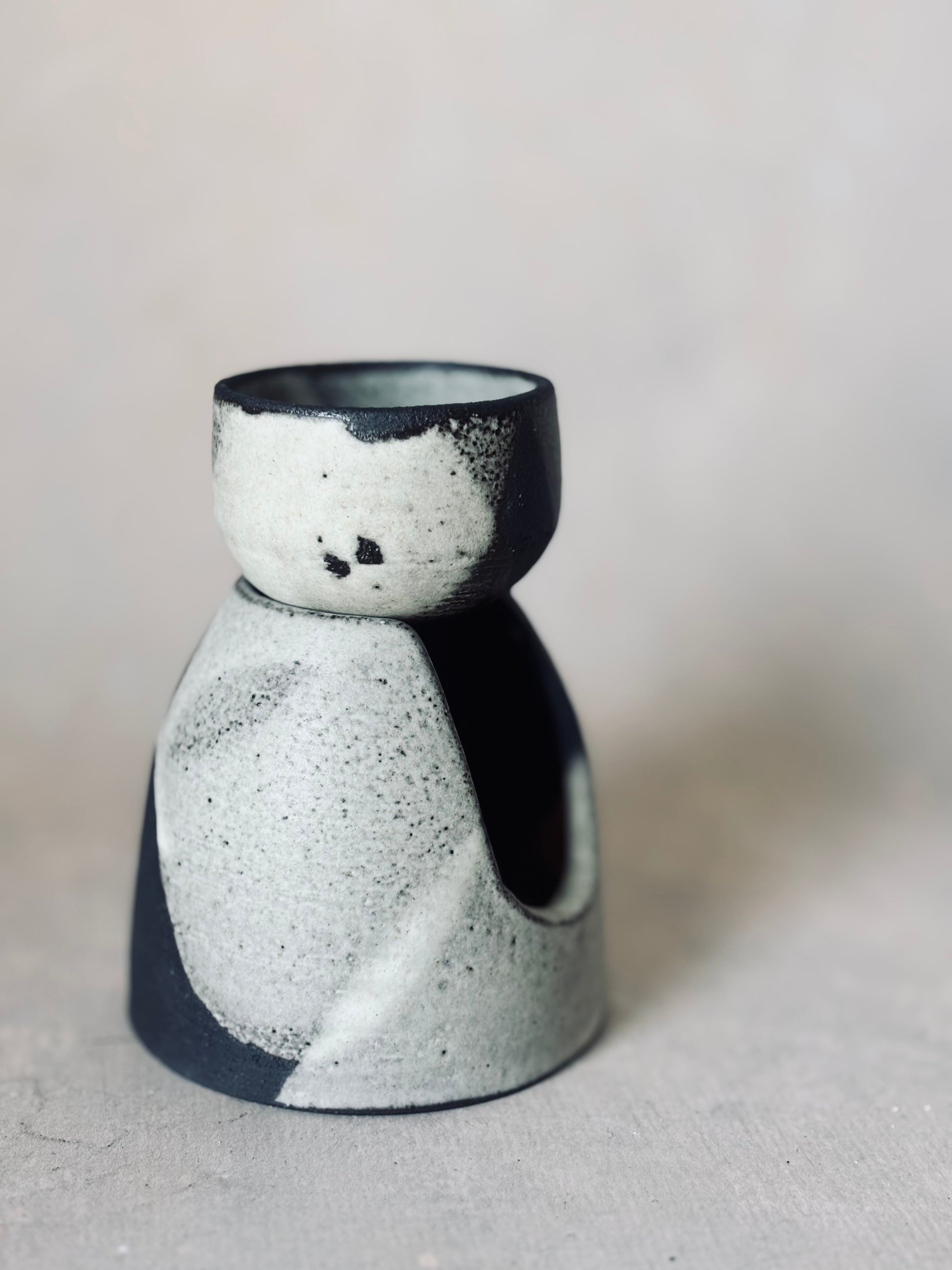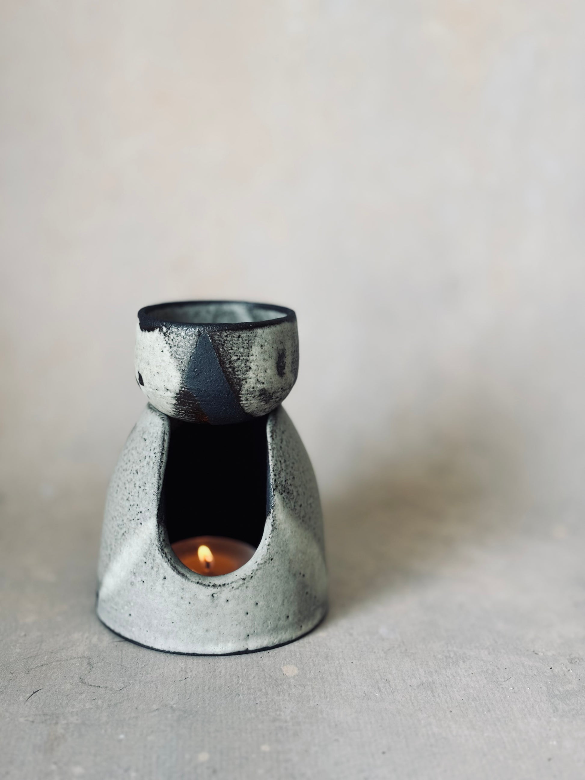 Black stoneware burner for oils or wax melts. Removable bowl.